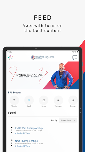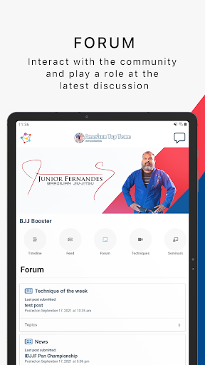 • Start disussions and engage with other app users. Have a question about a technique? Need advice from more experienced grapplers? The forum feature allows you to engage with other BJJ lovers to get the answers you need.