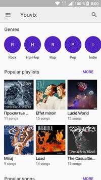 Youvix free music player. Listen your playlists offline.