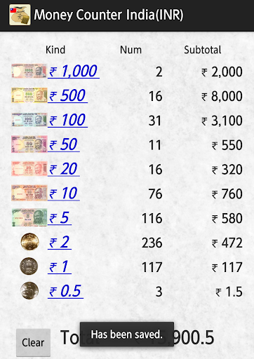 For each type of money, you can count the number. Data can be saved. It is possible to hold the screen shot as image data. Operation is very simple.