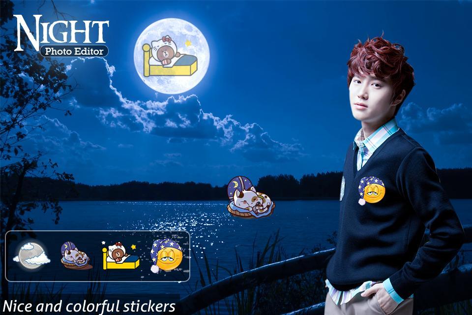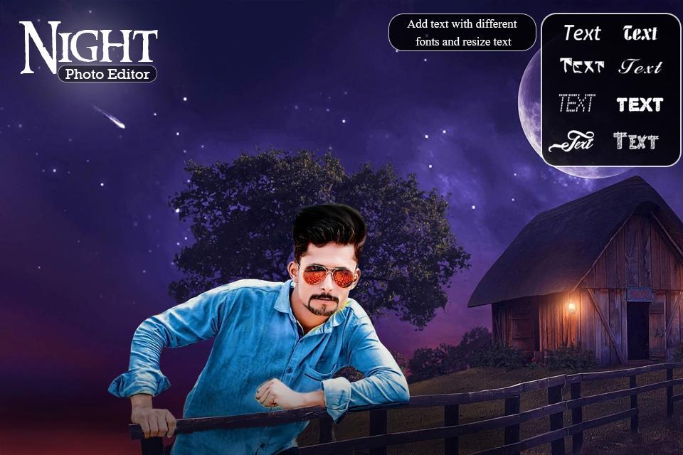Night photo editor with night backgrounds, stickers & text. Cut paste photo this app.