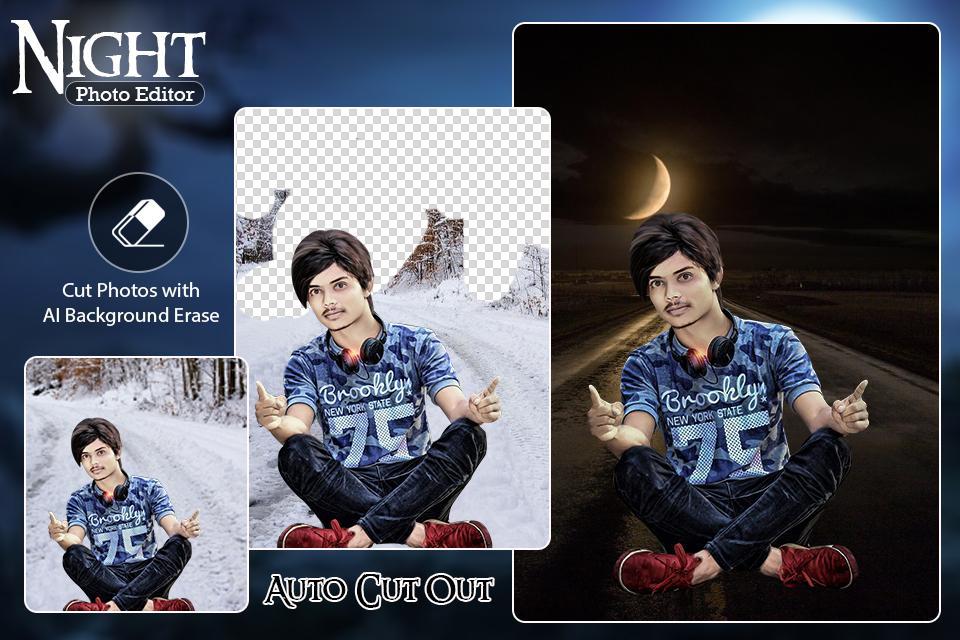 Night Photo Editor App has a cut paste photo and set new HD Night backgrounds.