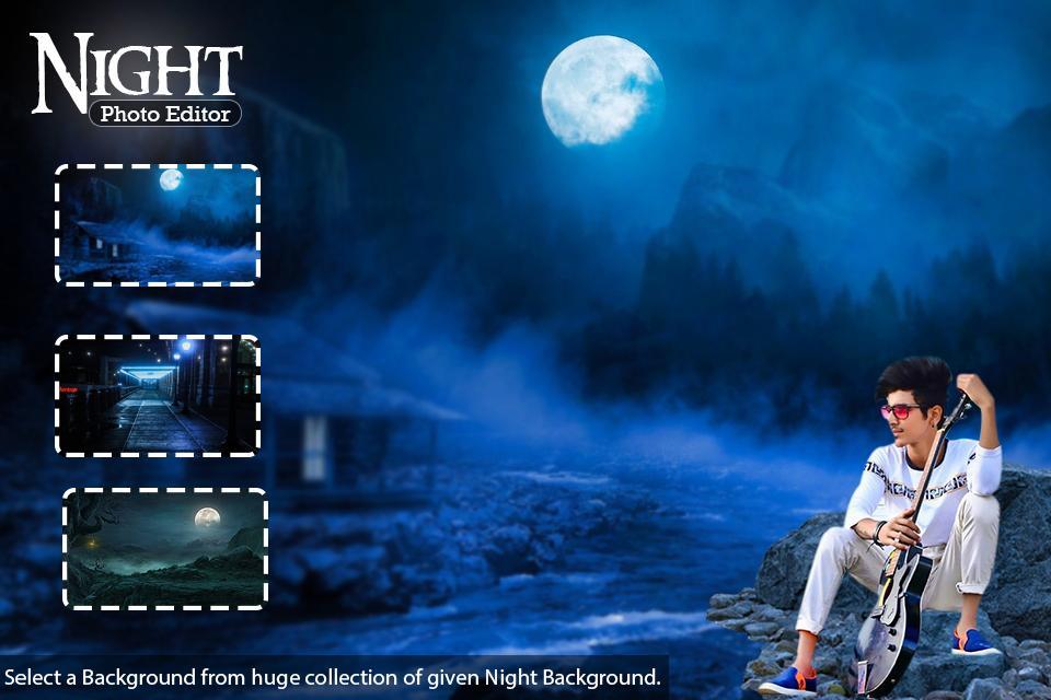 Night Photo Editor has 40+ Collection of night Backgrounds HD.