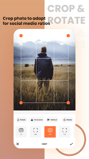 Using this filter editor photo effects app, you can add numerous filters and effects on your images. Adjust brightness, contrast, and add different types of filters as well as effects on your photos to make them flawless. Choose your favorite ones from hundreds of unique filters for pictures including aesthetic, vintage filters, wings, and overlay.