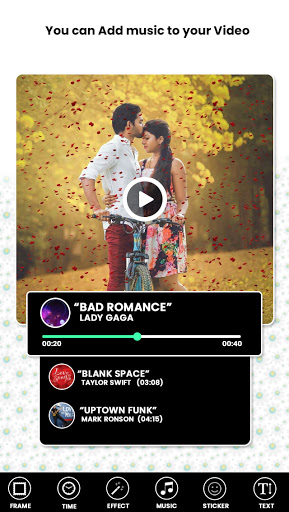 - Take multiple image from gallery and Arrange photo according to your slideshow maker at time of choosing and add music related to your video maker.