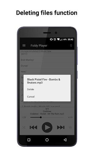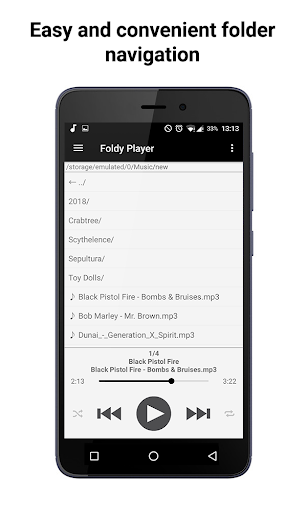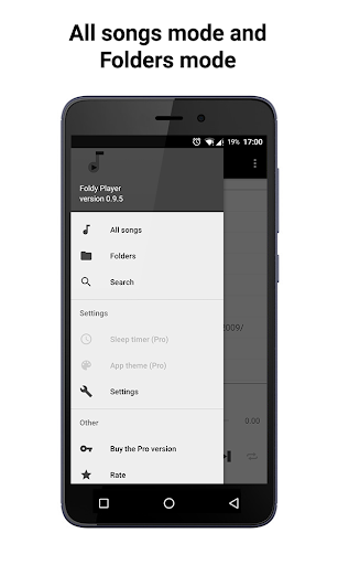 Playback in the modes of folders / all songs. Folder player allows you to navigate easily and quickly in files and folders on your smartphone. In the mode of all songs, a list of all audio compositions on the device is displayed. Also there is a quick search function.