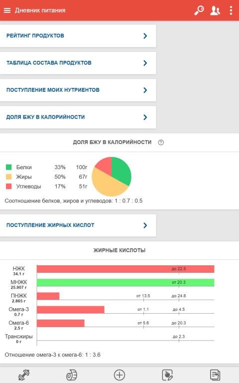 Подсчёт омега-3-6, насыщенных жирных кислот, трансжиров.