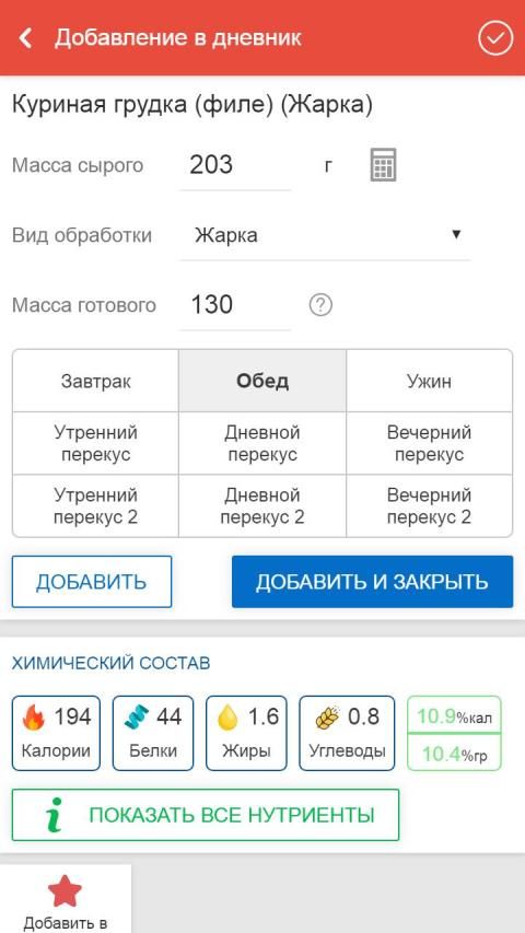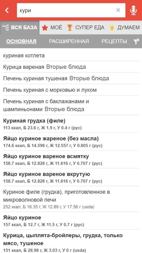 и брендов из более чем с 150 000 наименований с калорийностью и составом белков, жиров и углеводов.