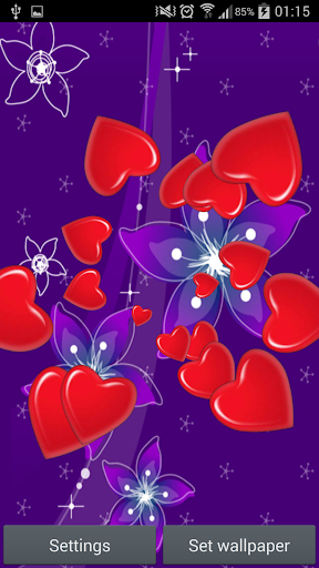Beautiful Live Wallpaper with flying hearts and background setting feature. You can get a background from the gallery or use phone camera. To use Live Wallpaper go to Settings --> Display --> Wallpapers --> Live Wallpapers and choose it.