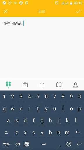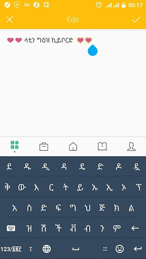 Latinግዕዝ Keyboard is a keyboard intended to make Geez alphabeting writing easy on android mobiles. The keyboard translates Latin alphabets to Geez while you write. For example if you write "selam" it will automatically change in to "ሰላም".