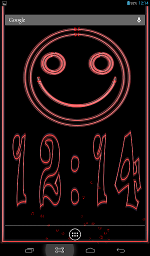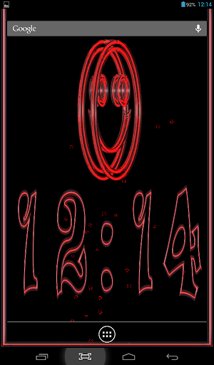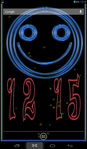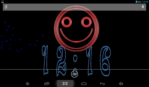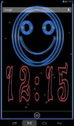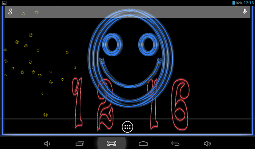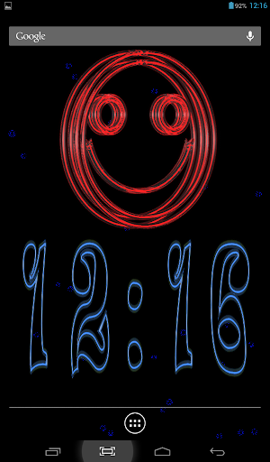 Rotating neon smile and digital clock. Two color schemes for the smiley, frames and hours, also you can choose the color of the particles, their size, the size of the smiley, several types of particle behavior. Original and positive.