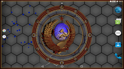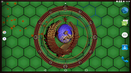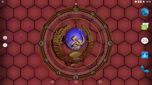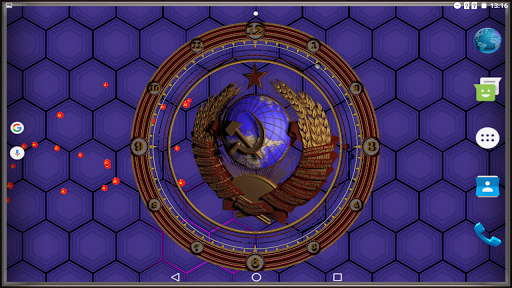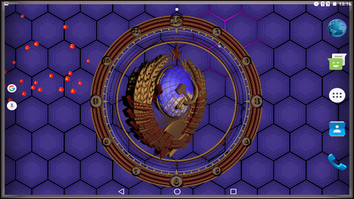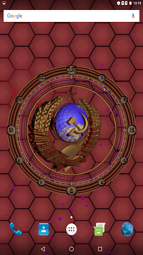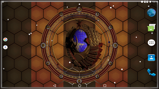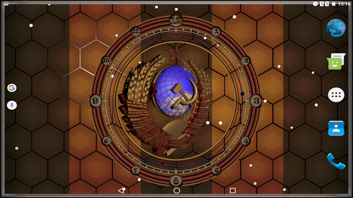 Original 3D live wallpaper with USSR coat of arms and clock function. Change background color, backlights color, size, quantity, color and type of behavier for dust particles, flting above to customize your wallpaper. Beautiful and original!