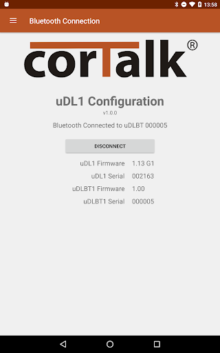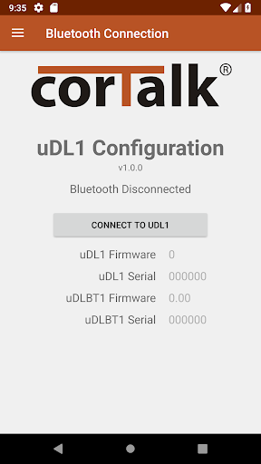 This app is for configuring the corTalk® uDL1 (micro Data Logger 1) with a uDLBT1 device. The uDL1 does not need to be plugged into a computer to set any of its settings, but still needs a computer to extract the data from the uDL1.