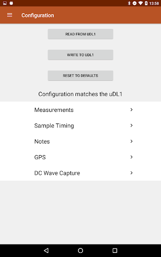 Note that measurement data logs, due to their size, can only be extracted from the uDL1 using the PC configuration application through the USB port.
