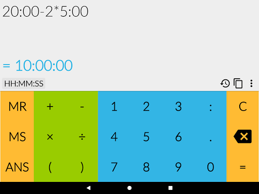 A tool for those, who need to calculate their time. Automatically recognizes entered data in different formats. Supports addition, subtraction, multiplication and division of data. Supports expressions. Shows calculation results in different formats.