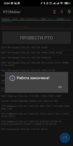 6. Nadat u het einde van het werkuiteinde hebt getoond - sla de resultaten op (BLAUWE knop aan de onderkant van het scherm op de foto van de diskette).
