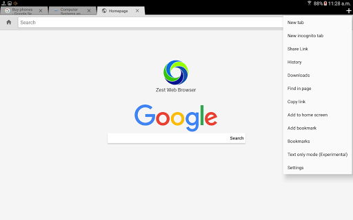 Privacy - Zest has Incognito mode so you can browse without leaving a trail. Zest also supports TOR Onion proxy (Orbot download required), I2P and third party proxy services. You can also set your homepage to use DuckDuckGo or any custom URL to enhance your privacy.