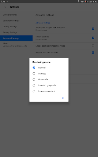 Inverted, Grayscale, High Contrast Rendering Modes