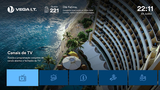 O VEGA TV é um sistema de in-room entertainment e interatividade com a capacidade de receber o conteúdo de TV, possibilitando a transmissão de canais abertos e fechados, além de vários aplicativos como YouTube, NetFlix e Spotify possibilitando mais alternativas de entretenimento que vão além do pay-per-view.