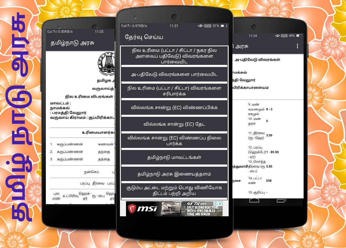 ✔️ பட்டா/சிட்டா விவரங்களை பார்க்க ✔️ அ.பதிவேடு விவரங்களை பார்க்க ✔️ வில்லங்க சான்று விண்ணப்பிக்க ✔️ விண்ணப்ப நிலை அறிய ✔️ வில்லங்க கோப்புகளை தேட