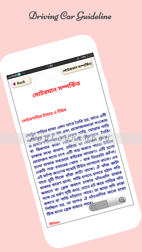 গাড়ি চালানোর পদ্ধতি ও গাড়ি চালানোর নিয়মাবলী সম্পূর্ন রুপে জানা খুবই গুরুত্বপূর্ন। গাড়ি চালনা কোর্স হাতে কলমে শিখে তারপর ই মাঠে নামা সম্ভব। ড্রাইভিং কোর্স না করা থাকলে লাইসেন্স পাওয়া খুব ই মুশকিল। আমাদের আজকের এই অ্যাপ টি হচ্ছে মূলত ড্রাইভিং প্রশিক্ষণ বই,ড্রাইভিং শিক্ষা বই pdf download বা ড্রাইভিং শেখার বই pdf এর আলোকে যেখান থেকে পাবেন গাড়ি চালানোর প্রশিক্ষণ সহ