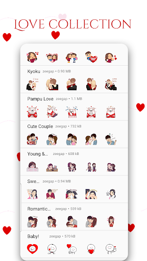We offer you amazing love stickers couple packs so you can choose the one you like best hug day love stickers. What are you waiting for? You're one step away from downloading one of the best love dialogue stickers collection for WhatsApp in the market. Suggested love sticker for a chat so you can pick the one you resembling greatest. Take or give ultimate love stickers, love u too stickers, what's up love stickers, rom, antic love stickers. WAstickers app have so many stickers categories like text stickers and love quote stickers. WASticker have high-quality incredible stickers that you can stake with a lovely friend. Creativity and 100% security. Good morning, good night love stickers for whatsapp. Heart Awesome collections love stickers, kiss me love stickers, emoji & valentine stickers,and also we provide story of love, stickerslove quotes stickers for whatsApp 2021and sorry love stickers share in a relationship and with friends love sticker 2021.