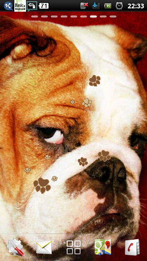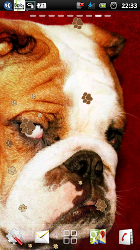 watch the cute bulldogs breathing at your android screen. bulldogs lwp is a cute live wallpaper featuring a retina wallpapers of cute bulldogs dog photo and flying dog paw which is cute and funny, perfect for dogs and animal lover such as you. get this bulldog wallpaper and dog live wallpaper now. bulldog is the name for a breed of dog commonly referred to as the english bulldog. other bulldog breeds include the american bulldog, olde english bulldogge and the french bulldog. the bulldog is a muscular heavy dog with a wrinkled face and a distinctive pushed-in nose. the american kennel club (akc), the kennel club (uk) and the united kennel club (ukc) oversee breeding standards. the bulldog is a breed with characteristically wide head and shoulders along with a pronounced mandibular prognathism. there are generally thick folds of skin on a bulldog's brow; round, black, wide-set eyes; a short muzzle with characteristic folds called rope above the nose; hanging skin under the neck; drooping lips and pointed teeth and occasionally, an underbite. the coat is short, flat and sleek, with colors of red, fawn or white, brindle and piebald.