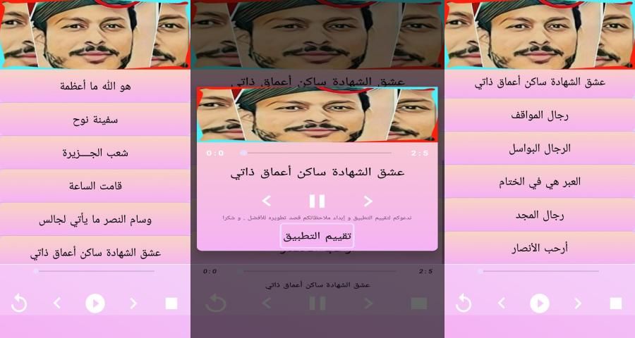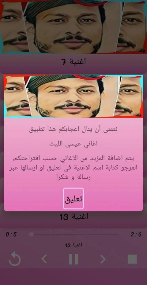 ** إذا اعجبك التطبيق لا تنسى دعمنا بخمس نجوم، وإن كانت هناك من ملاحظات فالمرجو الإبلاغ عنها من أجل العمل على تطوير البرنامج، وتوفير جميع الأغاني.