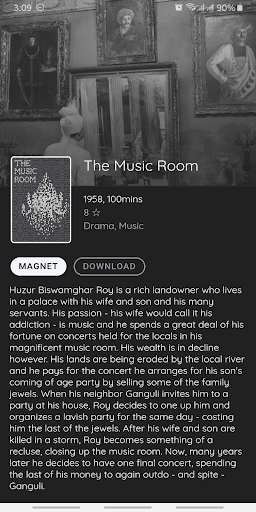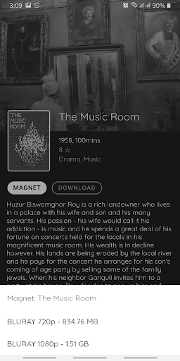 Note: We only provide magnet links and .torrent files. The app doesn't support the download within itself (just only browser). You will need to use other apps to download or play that .torrent files or magnet.