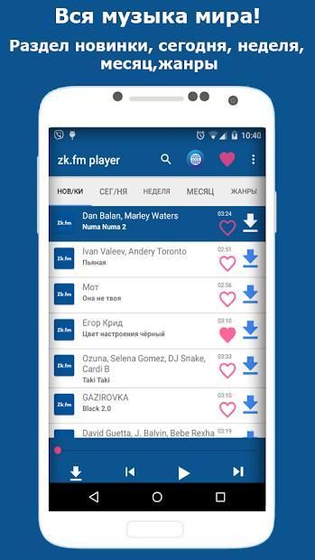 В приложении zk.fm Player вы можете слушать онлайн или скачать бесплатно самые популярные и рейтинговые песни.