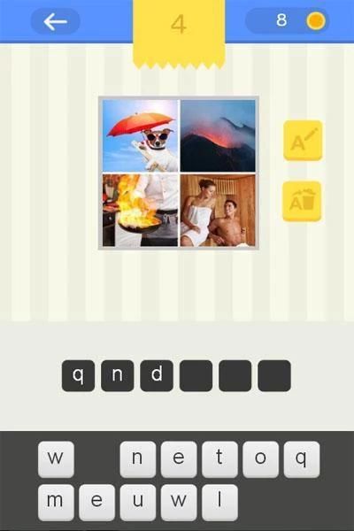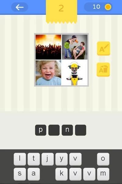 In each challenge you will see four pictures (images). Discover the word that the pictures have in common. For a quick answer will get more coins. It is very fun!