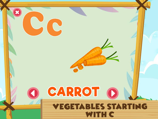 This app includes a separate list for animal names that start with c along with their pronunciation. There’s a similar one for birds. Not only this but vegetables that start with c, fruits that start with c and tapping on the things brings up the names of the objects starting with c as initial letter.The app is self-contained and doesn’t show up any options or settings screens, making it very child-friendly. It is fun and engaging and the sounds keeps children engaged.