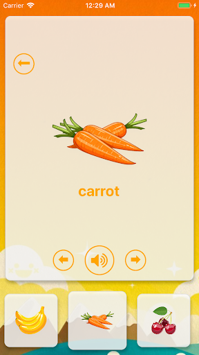 The game features a feature of listening and guessing, your baby will hear the sound coming out and choose the correct answer. With sharp images and sound standard English pronunciation will attract your baby, increase concentration to help your baby to recognize and speak more quickly