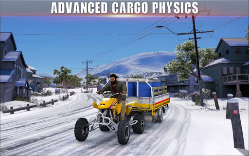 Game environment is specially designed for quad bike riders to enjoy real ATV riding in snowy mountain roads. Cargo transportation on trolley is a hard task and big responsibility. Get your helmet on for safety and drive 4x4 ATV bike to deliver cargo through off-road tracks. Avoid fast speed because you’re loaded with heavy cargo, so drive carefully and accurately to reach at the given destination. It’s time to prove you as a real quad bike rider on extreme off-road snowy terrains. Slow down while taking sharp turns to avoid accidents. Enjoy ATV driving simulator on snowy mountains and feel the real excitement and adventure