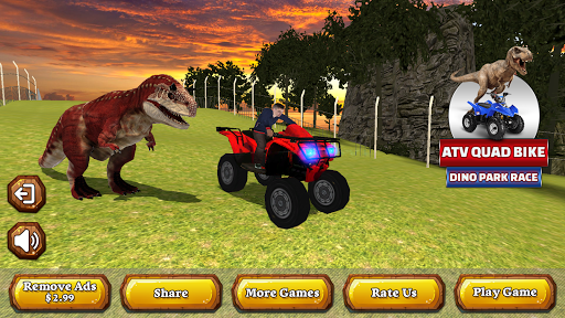 It’s time to jump on the atv quad and show off your moto driving skills. Now drive atv quad #bike on the offroad tracks of Jurassic jungle having loops, big jumps and zig zag obstacles to become the best stunt man in the racing games 2020 and be champion of the jungle racing championship 2020. Are you ready for quad #bike race with giant dinosaurs in offroad jungle games along with dinosaur racing games? You might have enjoyed many stunt driving games and impossible track games but this real dinosaur simulator games have atv quad #bike vs dino racing challenge unseen in modern atv quad #bike games.