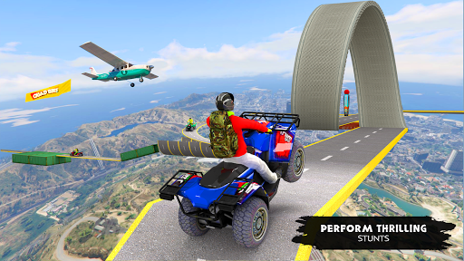 Enjoy Extreme Rooftop Four Wheeler ATV Quad Bike games with high speed over smooth but tricky track. Play best 4x4 ATV simulator game in your android device with different racing missions. This ATV bike racing game is test drive for your racing stunts skills and learn you tricky racing tips to drive through real hurdles and sideways. Be careful while driving or riding the ATV bike to avoid impossible fall and complete impossible drive challenge as expert ATV bike rider. Crazy ATV Quad Bike Stunts : Quad Bike Racing Game simulator impossible sky tracks ATV stunts is the fastest and most exciting 3d stunts action on mega ramp rooftop tracks for bike racing rider.