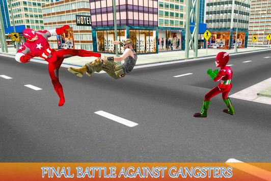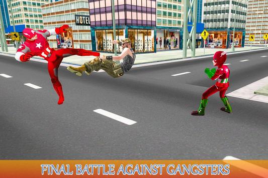Amazing captain hero kid vs Crime city villains, Being an amazing captain kid superhero, start your furious USA captain battle against criminal underworld to eliminate town crime in the huge crime city. Many crime villains and terrorist mafia have sped up their gang war activities to destroy your city. Your grand survival city has become a deadly town and real gangster for crime real battlezone. People are waiting for any city captain super hero and real fighting warrior to fight against crime and terror with his special powers. Make your city secure with superpower abilities like laser attack, shield attack and hand claw blade, ground stomp with lightning and become a captain hero fighter.