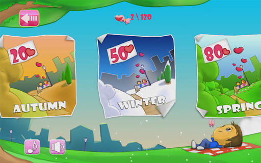 Amy is a courageous girl trying to pass all the levels in time and collect as many points as possible! In this thrilling 2D side scrolling adventure your task is to help Amy pass through the park and achieve her goal! Help Amy get to the end of each level in time and beat the summer heat, autumn rain, winter frost and spring allergies with your gaming skills!