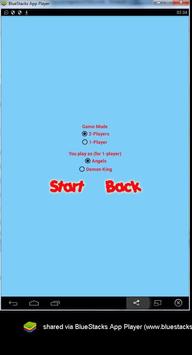 Angels must stop the movement of Demon King and Demon King can kill angels to win the game. Unlike the Angel versus Satan version where the Angels