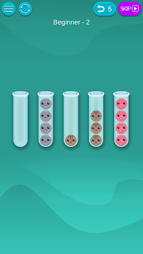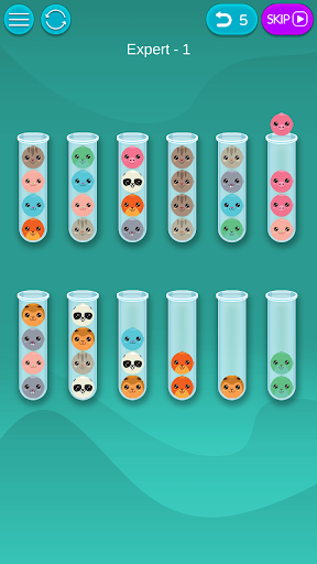 Sort the animals in the tube until all the animals are grouped to the same type. You will need to sort the animals like a ball into the same tube to win the level.