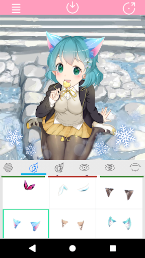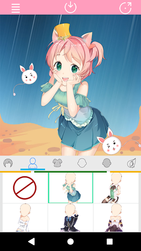 This app let you freely create anime girl image of variety of styles. you can choose your favorite eyes, eyebrow, skin color, hair style to create your lovely model. In addition, there are a great variety of accessories,shirts,blouses,skirts,gowns,overcoat to choose from. Start to design your lovely animated girl image with your unlimited imagination.