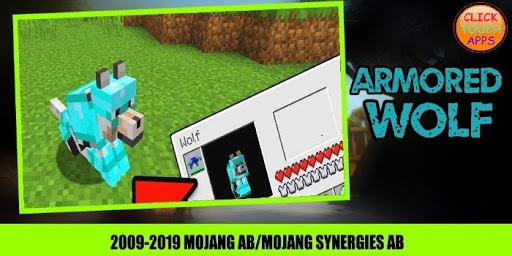 This app provides new popular mods and maps for craft. Specifically in this app you can find an add-on that implements armor for the wolves. A wolf can’t really decide whether to wear the armor or not since they are always spawned with the armor, assuming you’ve enabled the add-on. The armor protects them better and this is most noticeable by the fact that they have more health. As a player you’re also given a few more uses for the wolf. Give a saddle to a wolf to ride it. You can also give it a horse armor to upgrade the armor to Extra Protection.