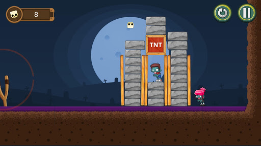 Zombies game. Challenge your skills by adjusting the traction, drag the skull to shoot