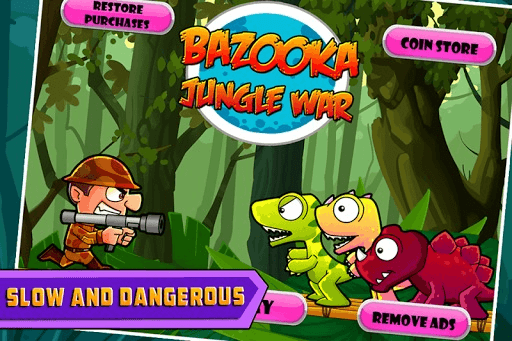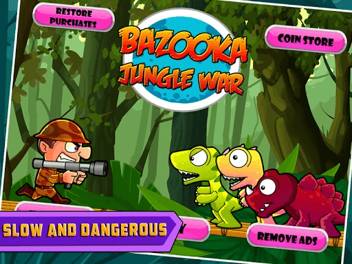 Awesome bazooka! Jungle war of all time! Experience the intense and most outrageous war in the deep jungle as you explore with your weapon bazooka and blown those enemies right out from their defence position. Those species of dinosaur definitely have their way to hunt their food as they are using their brain and bringing the war in the deep jungle where bazooka have little or no advantage at all. Bazooka Jungle War is a fast paced endless shooting running game where you have to destroy all incoming enemies and avoid getting killed. Don't miss out those power ups that come in limited time where you can triple your speed and collect more coins to change your bazooka character. This all-new awesome game features some really cool stuff: *Great game play, sounds and graphics? *Awesome fast paced action? *Special IAP Novice Mode - Use this IAP to play with out dying! Download and play with the Bazooka Jungle War today and become part of our community. If you love bazooka games join others in the Bazooka Jungle War make sure you visit our Facebook page!