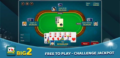 Big 2 game is a card game of Cantonese origin, one of the most popular poker/ card games in East Asia and in Southeast Asia and in the world, especially throughout China, Singapore, Hong Kong, Macau, Taiwan, Indonesia, Philippines. Big 2 games is also known as Poker Two, Dai Di, Pusoy Dos, Chikicha, Sikitcha, Capsa Banting, Thirteeen, Big2, BigTwo, Big Deuce and Top Dog.