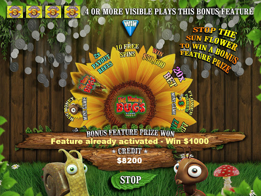 With unlimited free coins and bonuses, try to win as much money as possible by also playing features such as the Big Sun Flower Wheel of Fortune bonus feature plus the Bug Money and Flower Power mini-games to accumulate virtual credit prize bonuses.