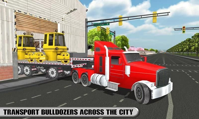 Play the role of car transporter and carry vehicles like construction bulldozer crane across the city. Load luxury cars in transport trailer to county and show expert truck driving skills in parking mania on city streets. Load Bulldozer and excavator cranes and take them to construction site in newest truck simulator 2016. These epic trailer truck are super duper powerful so perform crazy stunts on curvy roads. Drive ahead in tow truck and deliver cargo like wild animals and wood logs in transporter simulator 2016. Drive oil tanker like world champion driver and perform stunts 3D like truck legends. Road construction needs cement reloading and material delivered so drive log truck and deliver bulldozer crane, follow traffic regulation and keep pedestrians safe in New York City.