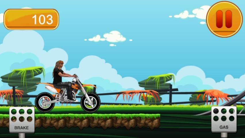 The tracks are designed so would do many stunts on the run, the bike will spin doing frontflip, backflip or even both - but watch out not to land on the roof! The comic track brings the fun and realistic bikes gives the excitement. Also soundtrack makes the mood ready for the awesome ride!