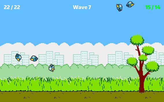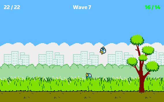 When the dog track down and chased the birds out of the bushes, the hunt has began. To shoot down the bird must touch it on the screen of your device. To pass to the next round must shoot the right amount of birds. The amount and rate of birds is dependent on the round in which you are. The game ends when you fail to shoot down the required amount.