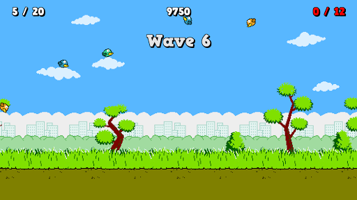 When the dog track down and chased the birds out of the bushes, the hunt has began. To shoot down the bird must touch it on the screen of your device. To pass to the next round must shoot the right amount of birds. The amount and rate of birds is dependent on the round in which you are. The game ends when you fail to shoot down the required amount.