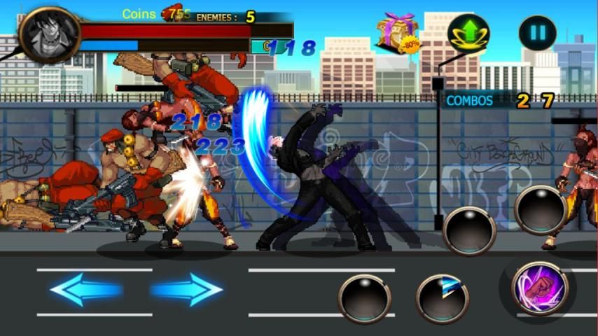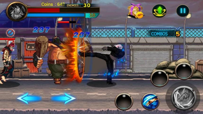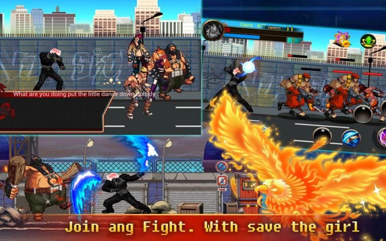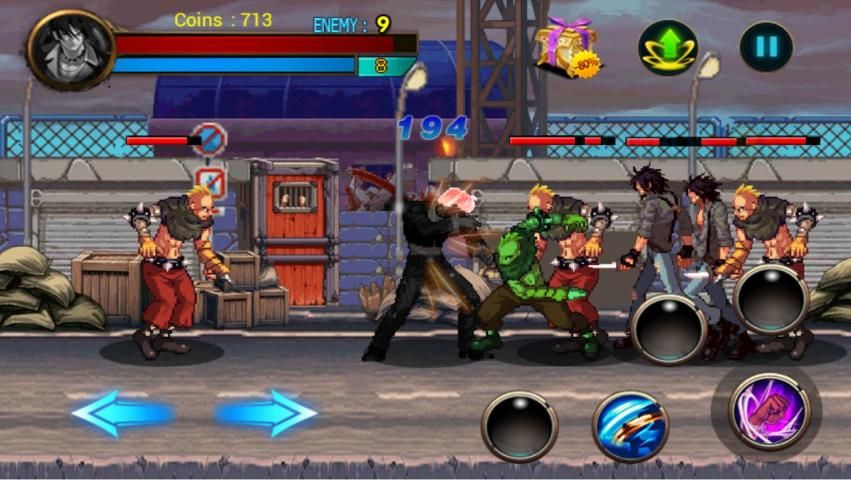Simple control interface and easy to learn street skills, as well as a wide range of skills you can mix for ultimate devastating combos. Many items will help you achieve your victory. Defeat all opponents and take all their territories! Use quick reflexes and special moves, unleash power punches and combos, beat all opponents and become the king of street now!